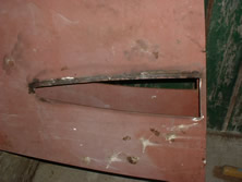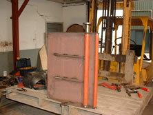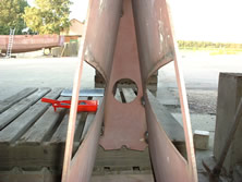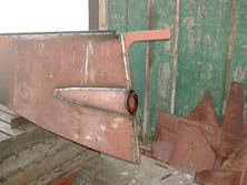 Zo bleek bij het controleren van kielplaten, dat de opening waarop later de beide "schelpen" moeten komen wel goed van grootte was, maar op verschillende hoogte uit de platen was uitgesneden. Het verschil was bijna 2 cm. Dit moest dus eerst gecorrigeerd worden (Zie foto). Echter: "welke van de twee openingen zat op de goede plek?".