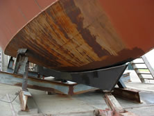 Het passend maken van de kiel was al met al nog een lastige klus, omdat de kiel daartoe een paar keer onder het casco geschoven moest worden.