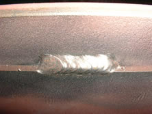 Controleer tijdens het aflassen regelmatig of alles netjes strokend blijft. Zo zou het kunnen gebeuren dat er door het krimpen een hechtlasje losbreekt (KNAL). Dan eerst goed nakijken wat er is gebeurd en dit lasje weer repareren voor je verder gaat met aflassen. Blijf goed letten op de vloeiende vorm van het plaatwerk.