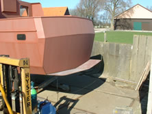 Wanneer het casco in elkaar staat moet het nog afgelast worden, probeer dit "dun" te doen, en werk weer symetrisch, een stuk aan stuurboord en hetzelfde stuk aan bakboord, niet in een keer alles aan een kant en daarna de andere kant. Het materiaal wordt warm en zal krimpen, indien je symetrisch werkt zal het krimpen ook mooi gelijkmatig en symetrisch verlopen.